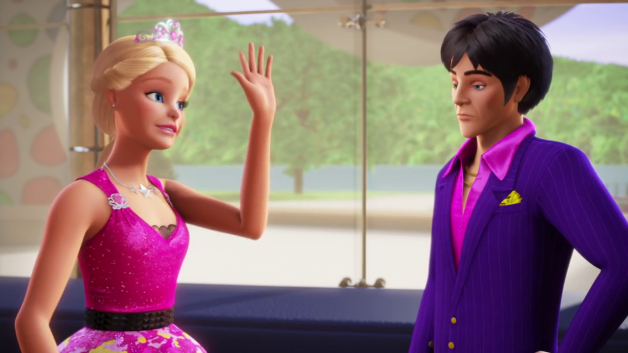 Animation: Yet again, the animation for this movie is pretty creepy. Seriously though, what the hell did you expect at this point after 30 Barbie movies? The character designs look off with their caricatured features which leave them looking as plastic as the dolls and it's clear yet again whenever they're reusing models but changing the hair colour& style/skin tone/clothes. The worst aspect this time round though, has to be the character animation. Since there's a load of dance scenes, while the choreography itself is OK, the rendering is terrible. It feels really clunky and the motion capture makes it even more distracting. As for the backgrounds, they're actually pretty creative in terms of design. While the rendering isn't that great, both camps are interesting to look at in terms of architecture, like the giant piano as Camp Pop's main building, the giant castle combining classic and modern architecture, and the elaborate concert stage for the sing-off. However, that's only it with them other than the treehouses and with all the pinks, purples and blues, it can get boring really fast. The same can apply with the magic and effects, being a bit inconsistent from looking pretty nice to downright embarassing. I will say that at least the movie tries to give it some scope and it is interesting seeing the two completely different styles of camps blend together and it is admittedly pretty colourful. Although I can't say it's amazing even by direct to DVD standards, at least there's a few good things despite not making up for the obvious flaws.